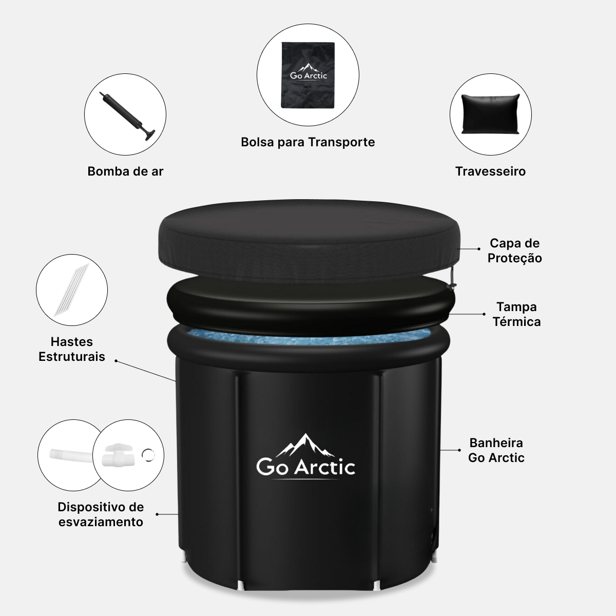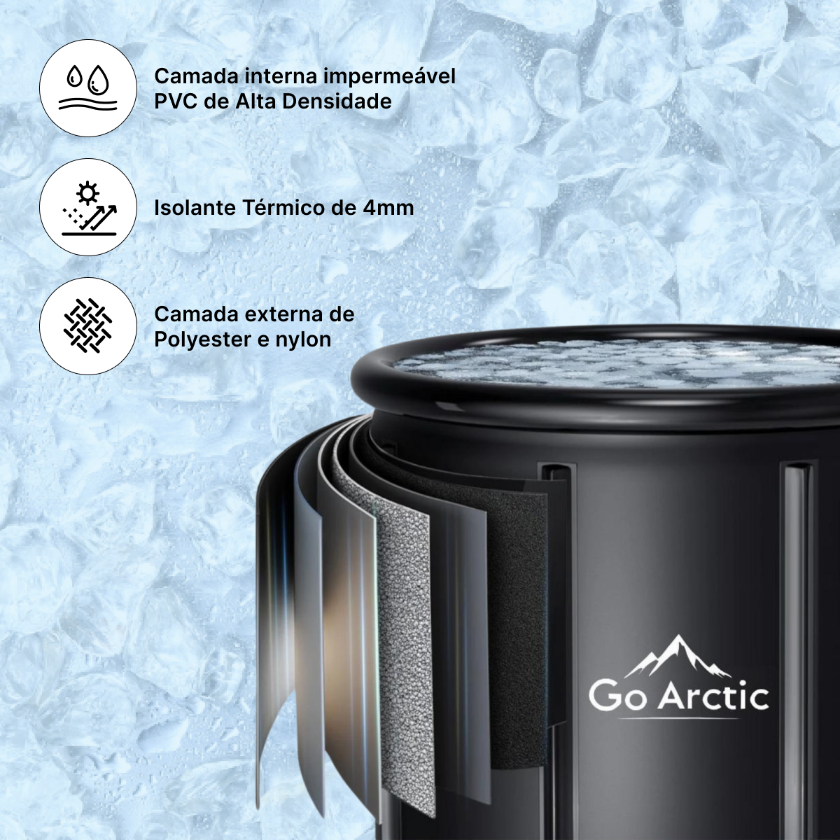 Go Arctic - Banheira de Gelo Premium, 300 Litros, com Isolamento Térmico de 4mm